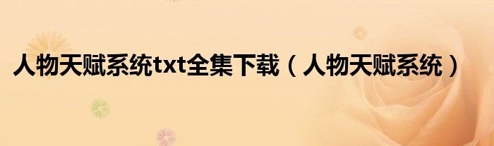 人物天赋系统txt全集下载,人物天赋系统很多人还不知道,乐乐来为大家解答以上问题,现在让我们一起来看看吧!