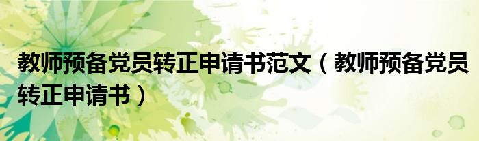 关于教师预备党员转正申请书范文,教师预备党员转正申请书这个很多人还不知道,今天菲菲来为大家解答以上的问题,现在让我们一起来看看吧!