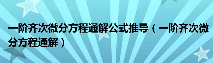 大家好,小晋来为大家解答以下问题,关于一阶齐次微分方程通解公式推导,一阶齐次微分方程通解很多人还不知道,今天让我们一起来看看吧!
