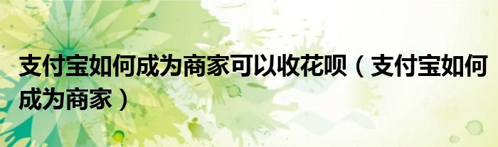 大家好,小晋来为大家解答以下问题,关于支付宝如何成为商家可以收花呗,支付宝如何成为商家很多人还不知道,今天让我们一起来看看吧!