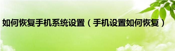 大家好,小晋来为大家解答以下问题,关于如何恢复手机系统设置,手机设置如何恢复很多人还不知道,今天让我们一起来看看吧!