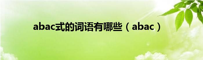 关于abac式的词语有哪些,abac这个很多人还不知道,今天菲菲来为大家解答以上的问题,现在让我们一起来看看吧!