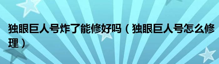 独眼巨人号炸了能修好吗(独眼巨人号怎么修理)