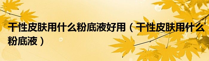 关于干性皮肤用什么粉底液好用,干性皮肤用什么粉底液这个很多人还不知道,今天菲菲来为大家解答以上的问题,现在让我们一起来看看吧!