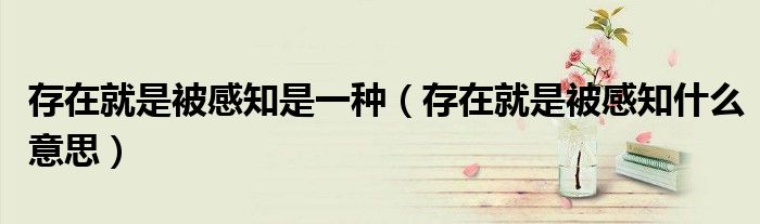 关于存在就是被感知是一种,存在就是被感知什么意思这个很多人还不知道,今天菲菲来为大家解答以上的问题,现在让我们一起来看看吧!