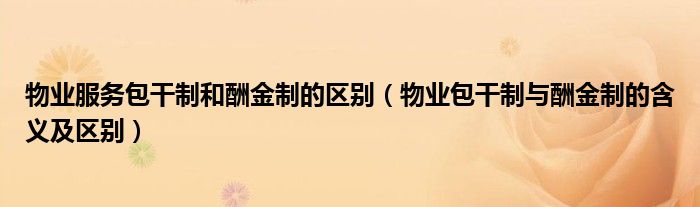 关于物业服务包干制和酬金制的区别,物业包干制与酬金制的含义及区别这个很多人还不知道,今天菲菲来为大家解答以上的问题,现在让我们一起来看看吧!