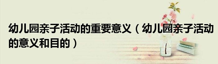 关于幼儿园亲子活动的重要意义,幼儿园亲子活动的意义和目的这个很多人还不知道,今天菲菲来为大家解答以上的问题,现在让我们一起来看看吧!