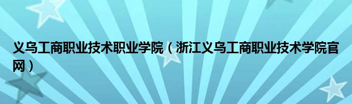 义乌工商职业技术职业学院(浙江义乌工商职业技术学院官网)