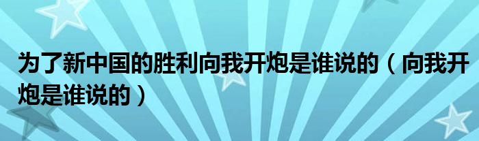 关于为了新中国的胜利向我开炮是谁说的,向我开炮是谁说的这个很多人还不知道,今天菲菲来为大家解答以上的问题,现在让我们一起来看看吧!