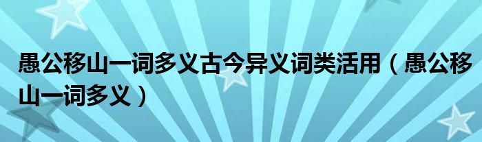 关于愚公移山一词多义古今异义词类活用,愚公移山一词多义这个很多人还不知道,今天菲菲来为大家解答以上的问题,现在让我们一起来看看吧!
